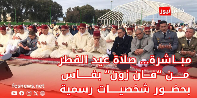 Fes – The city of Fes witnessed a special spiritual atmosphere this morning during the Eid al-Fitr prayer, with a large turnout of worshippers at the “fan zone” in Oued Fes, in an environment marked by devotion and unity.